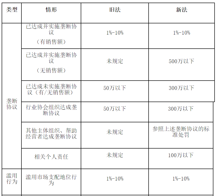 《新法》大幅提高了對相關違法行為的罰款數額,并對壟斷行為實行“雙罰制”,即不僅處罰單位,而且處罰相關負責人,同時增加失信懲戒、刑事責任等更多違法處罰責任形式。