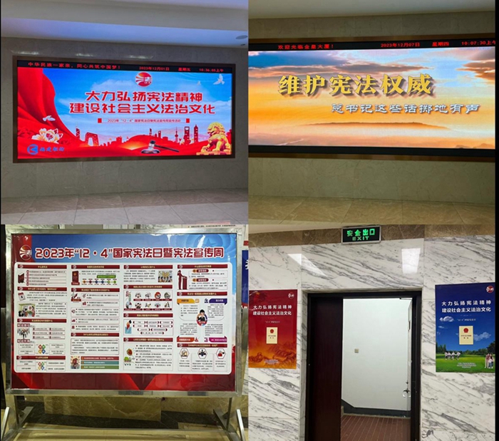 一是充分運用“報、臺、網、端、微、屏”等媒體平臺開展憲法宣傳活動。通過公司網站發布2023年“憲法宣傳周”宣傳圖片、宣傳文章,利用公司LED電子顯示屏滾動播放宣傳海報及宣傳視頻,張貼2023年國家憲法日主題宣傳展板及海報,組織全體員工觀看憲法學習宣傳視頻等。