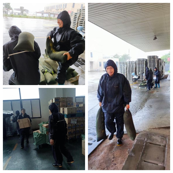 (圖為晶秀輕化黨支部帶領(lǐng)突擊隊準備防御第5號臺風“杜蘇芮”物資等)
