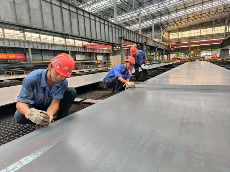 三鋼閩光股份公司板材事業(yè)部中板作業(yè)區(qū)熱軋乙班骨干和職工堅(jiān)守崗位,一絲不茍地測量鋼板厚度、寬度、不平度等參數(shù),為生產(chǎn)高質(zhì)量板材保駕護(hù)航,以優(yōu)質(zhì)產(chǎn)品更好地展現(xiàn)企業(yè)的良好形象。