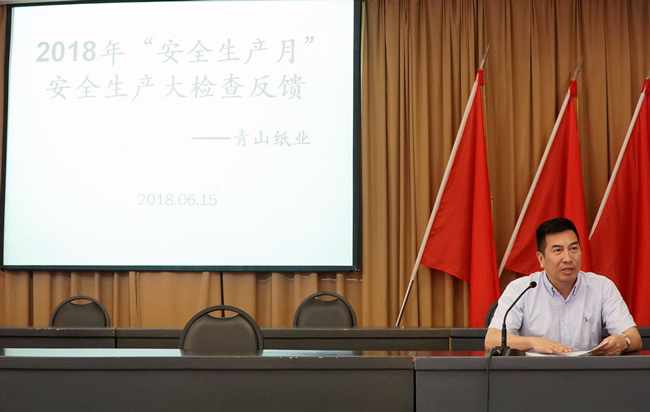 鄭書雄副總經理在6月15日的青山紙業安全生產大檢查反饋會上對下一階段安全生產工作提出了四點要求,一是要深入貫徹宣傳習近平總書記應急管理的重要思想及安全發展理念,做到入腦入心,落地生根,特別要把深入宣傳落實《地方黨政領導干部安全生產責任制規定》作為重中之重;二是要繼續做好安全生產月活動,要聚焦主題,著力提升宣傳工作的針對性和實效性;三是要全面落實控股公司安全生產工作考核辦法;四是要抓好汛期安全生產,切實加強安全生產應急值守和處置工作,嚴防自然災害引發安全生產事故。