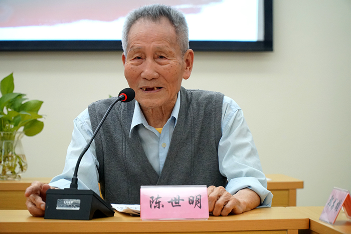 講座中,95歲高齡的陳老講述了革命戰爭年代,福州解放的歷程及自己一生幾經生死考驗卻從未言棄的故事。因為心中充滿著“革命理想高于天”的豪邁情懷,因為理想信念堅如磐石,入黨71年,陳世明同志始終不忘初心,牢記使命,把黨的事業當作自己畢生的追求。這一堂生動的革命歷史教育課,深深觸動了在場所有人。