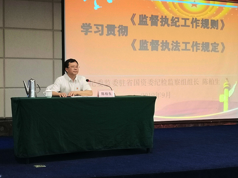 同時,省紀委監委駐省國資委紀檢監察組組長陳柏生到現場授課。陳柏生組長結合國有企業實際,并圍繞《規則》和《規定》指出,國有企業紀檢監察工作存在的“五個不足”,即:壓力傳導不到位,精準監督不到位、制度落實不到位、案后整改不到位和隊伍建設不到位。同時,強調了紀檢監察工作“五個更嚴要求”,即:審查調查更嚴、監督程序更嚴、垂直管理更嚴、制約監督更嚴、堅持黨的領導及監督更嚴。