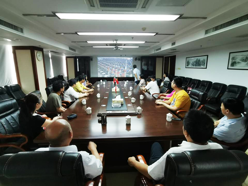 公司廣大干部群眾同心向祖國,共同見證偉大祖國的繁榮與富強,為祖國的強大感到驕傲和自豪。黨組書記、總經理黃文定,黨組成員潘士穎、林兵霞、黃金鏢及公司本部黨員職工在公司金皇大廈18樓會議室全程觀看大會和閱兵式直播實況。