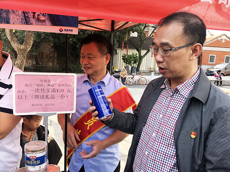 9日上午,支部黨員來到泉州德濟門遺址廣場,參加泉州鹽業公司組織的“閩鹽宣傳走進社區”活動,大家主動分發宣傳單并為社區居民普及食鹽安全及科學補碘知識。