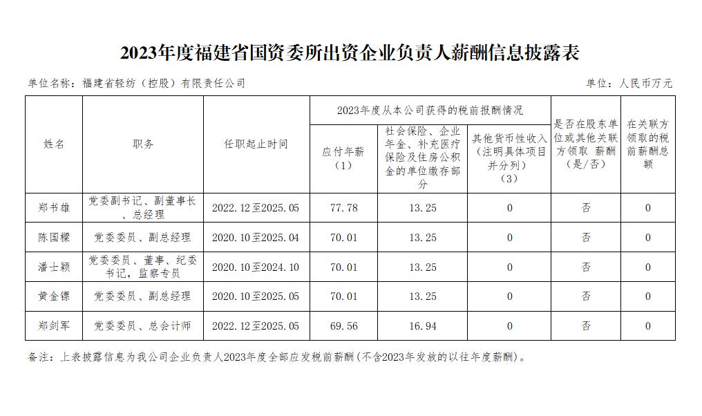 福建省國資委所出資企業(yè)負責人2023年度薪酬信息披露表