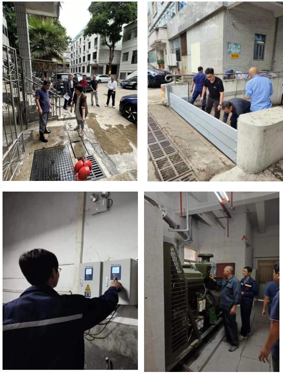 演練從消控中心值班人員發(fā)現(xiàn)地下室設(shè)備用房雨水倒灌開始,經(jīng)現(xiàn)場確認(rèn)、逐級報告批準(zhǔn)啟動Ⅲ級防汛預(yù)案,安全員組織人員搬運沙袋、啟用防汛擋板阻檔雨水進(jìn)入地下室,電工檢查排水溝、配電室、發(fā)電機等重要設(shè)備設(shè)施,啟動抽水泵抽水,消控員密切關(guān)注大廈周邊情況,逐一檢驗應(yīng)急處置細(xì)節(jié)及各部門分工合作。