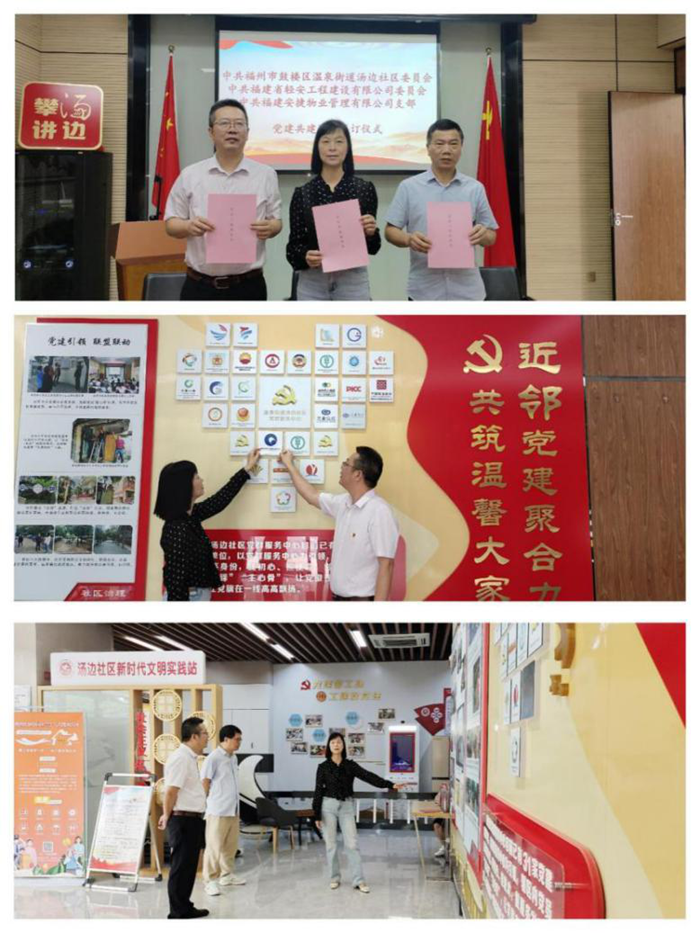 為深入學習貫徹習近平新時代中國特色社會主義思想和黨的二十大、黨的二十屆三中全會精神,切實推動精神文明創建和單位文化建設,構建基層黨組織共建、各方黨員參與、共同提升黨建工作水平的新格局,經各方黨組織協商一致,中共福建省輕安工程建設有限公司委員會、中共福州市鼓樓區溫泉街道湯邊社區委員會、中共福建安捷物業管理有限公司支部于2024年9月27日上午在溫泉街道湯邊社區簽訂三方黨建共建協議,正式結成黨建工作聯盟單位。