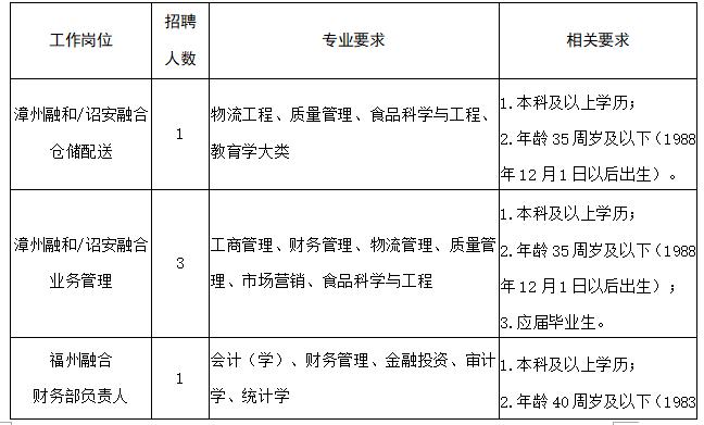 2.漳州融和/詔安融合業(yè)務管理 3人